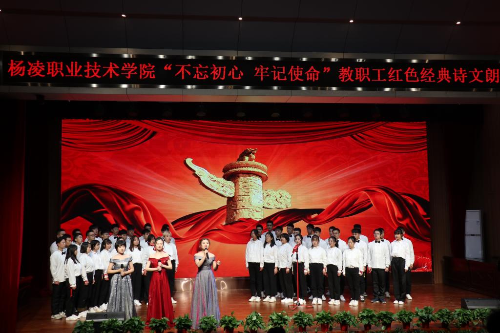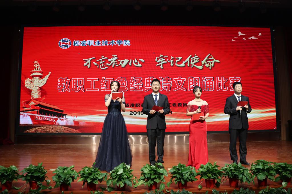 学院党委书记陈宁、副书记任得元,杨凌示范区党工委宣传部部长张小明、总工会权益保障部部长冯齐,应邀与各分会主席、教职工代表等300余人一同观看了朗诵比赛。
