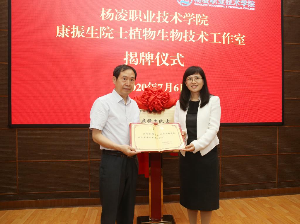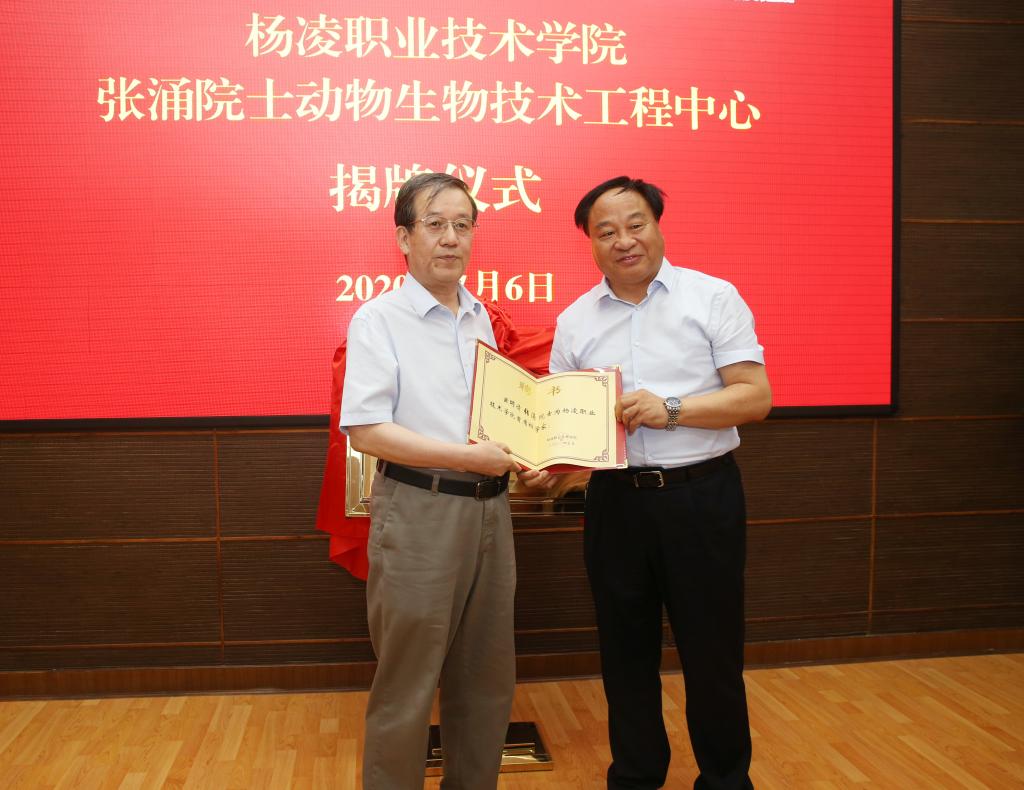 会上,吴普特、王周锁代表双方签署了《西北农林科技大学支持350vip浦京集团官网建设高水平高职院校框架协议》。康振生院士、陈宁为350vip浦京集团官网—康振生院士植物生物技术工作室揭牌;张涌院士、王周锁为350vip浦京集团官网—张涌院士动物生物技术工程中心揭牌。陈宁、王周锁分别为康振生院士、张涌院士颁发首席科学家聘书。