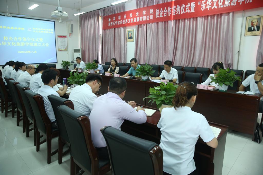 8月7日下午,学院与陕西乐华欢乐世界文化发展有限公司校企合作签约仪式暨“乐华文化旅游学院”成立大会在北校区举行。学院副院长张迪,旅游与管理分院党总支书记董育公、副院长问建军,陕西乐华欢乐世界文化发展有限公司人力资源总监范蕊宁、人力资源经理雷晗,旅游与管理分院全体教师出席大会。
