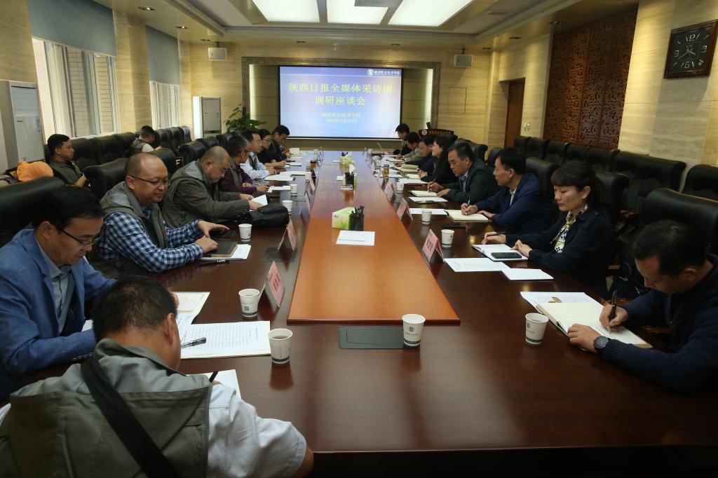 9月22日下午,由陕西日报副社长卢尚义带领的陕西日报全媒体采访团走进我院,就我院特色亮点工作进行采访调研。党委书记陈宁出席座谈会并介绍学院相关情况。党委委员、发展规划处处长张宏辉、保卫处处长周宁、水利工程分院院长郝红科、继续教育与培训学院负责人黄璞、科技与教育研究处相关负责同志和宣传部全体工作人员参加调研座谈会。座谈会由党委宣传部部长裴红波主持。