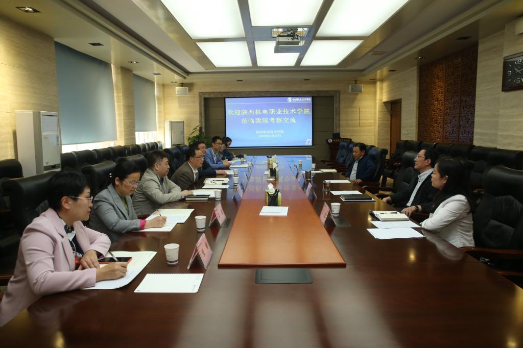 9月24日上午,陕西机电职业技术学院党委副书记、院长向纪明,党委副书记、纪委书记齐晓军一行8人来我院就宣传、人事等工作考察交流。院长王周锁、党委副书记任得元、党委宣传部部长裴红波、人事处副处长蒋霞等参加座谈会。