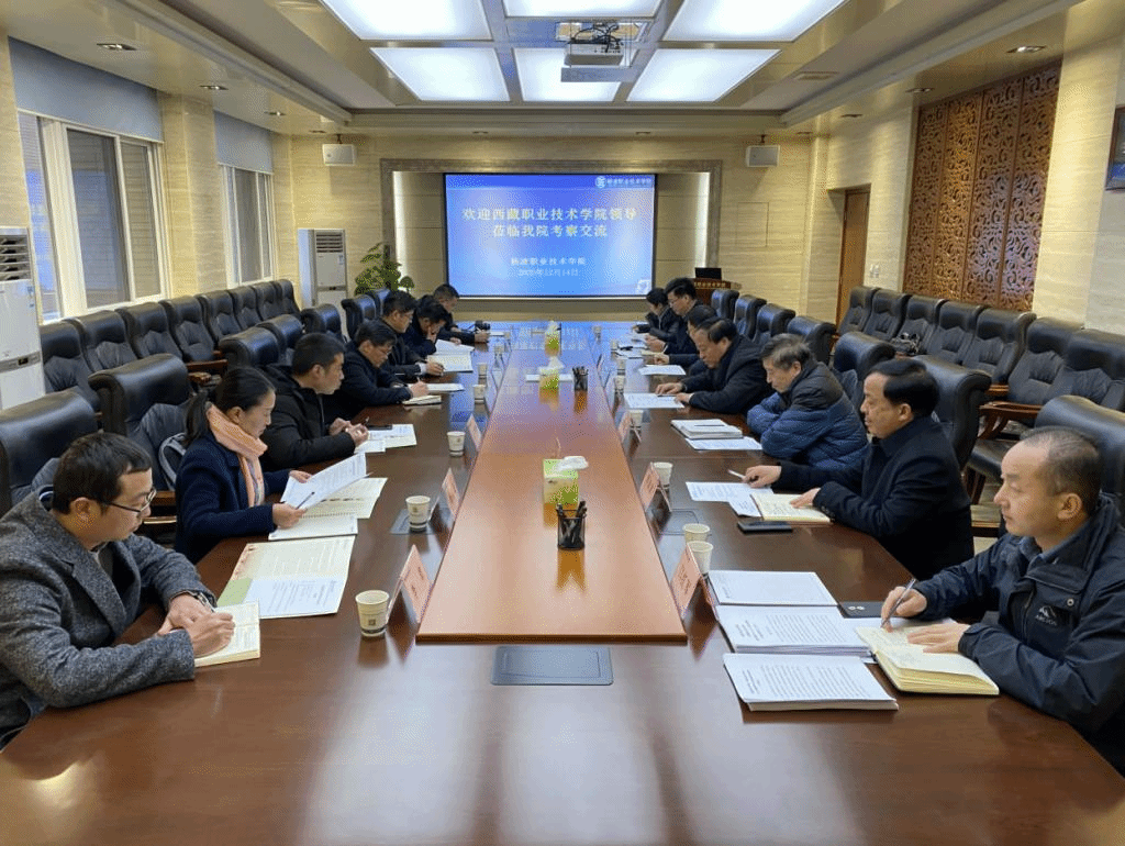 12月14日上午,西藏职业技术学院党委书记采守宽一行7人来浦京考察交流。校长王周锁,副校长祝战斌,党委委员、教务处处长拜存有,学生处处长李战虎,动物工程分院副院长张振仓,在南校区醒钟楼208会议室与其进行了座谈交流。