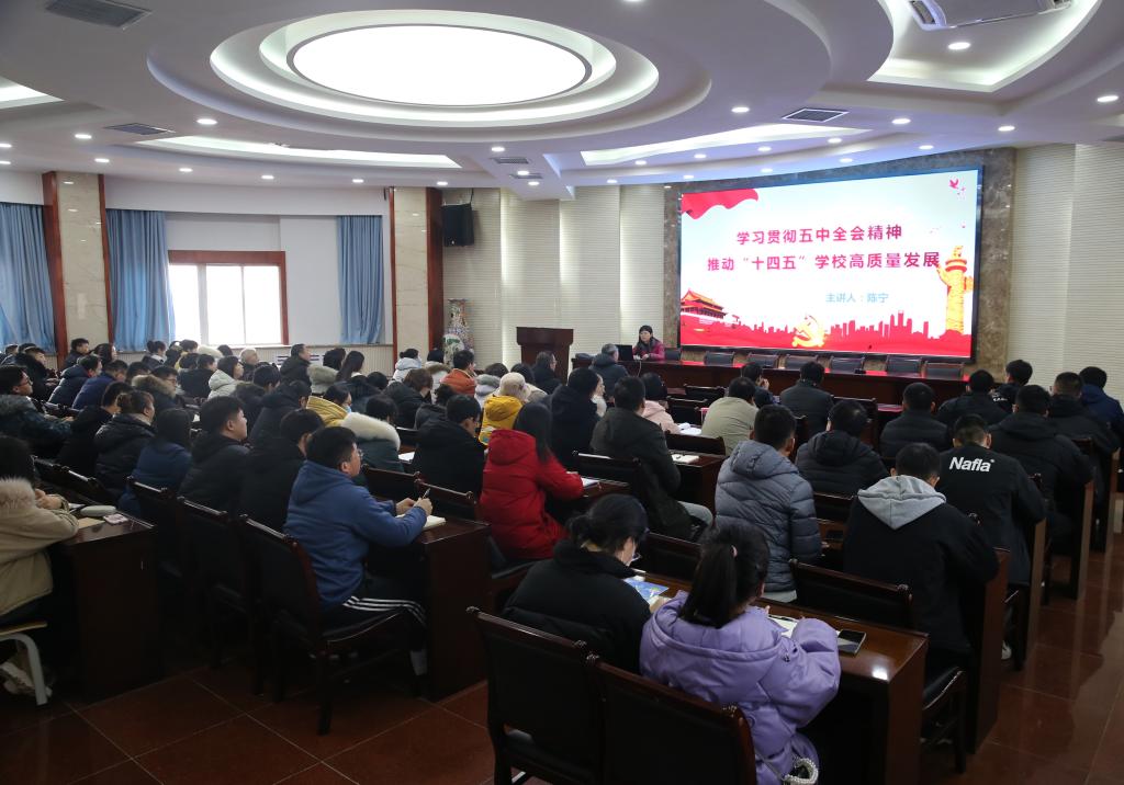 12月21日下午,陕西高校党委宣讲团成员、学校党委书记陈宁以《学习贯彻五中全会精神,推动“十四五”学校高质量发展》为题,为水利工程分院师生党员宣讲十九届五中全会精神。宣讲会由水利工程分院党总支书记刘儒博主持。