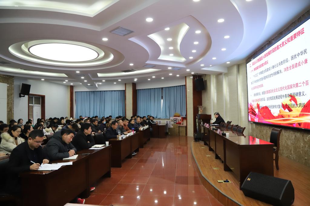 祝战斌围绕党和国家事业取得的决定性成就、新发展阶段的重大意义和重要特征、我国发展环境面临的复杂变化、构建新发展格局的战略构想和重要着力点、“十四五”期间经济社会发展的指导方针、主要目标和重点任务、如何实现“十四五”规划和2035远景目标等六个方面,深入浅出的对党的十九届五中全会主要内容和精神实质作了详细解读,并结合浦京“十四五”指导思想及“123456”发展思路进行了宣讲。