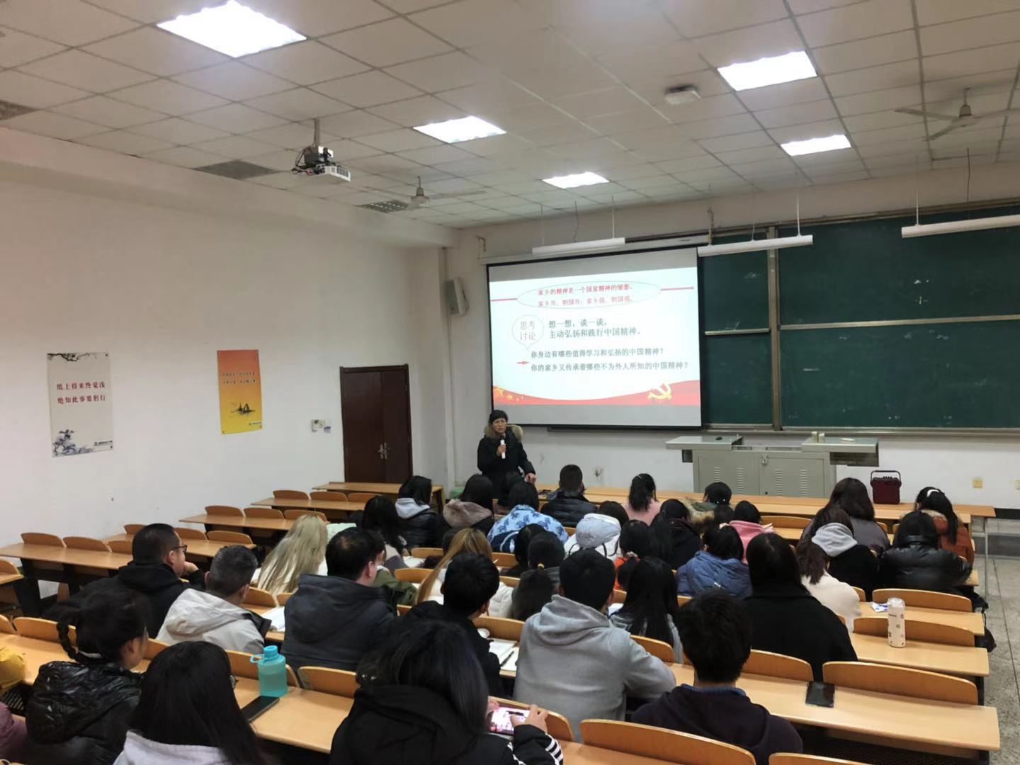 针对如何弘扬中国精神,陈宁重点讲述了同学们身边熟悉的榆林治沙过程中普通老百姓的“治沙精神”和浦京“赵瑜精神”的事例。她强调,中华民族能够生生不息、薪火相传,根本原因就在于中华民族有一脉相承的精神追求、精神特质和精神脉络,“治沙精神”和“赵瑜精神”正是中华民族勤劳勇敢、自强不息精神的缩影和实践弘扬者。她勉励同学们在新时代条件下,要学好本领、打好基础、主动担当、知行合一的弘扬中国精神。