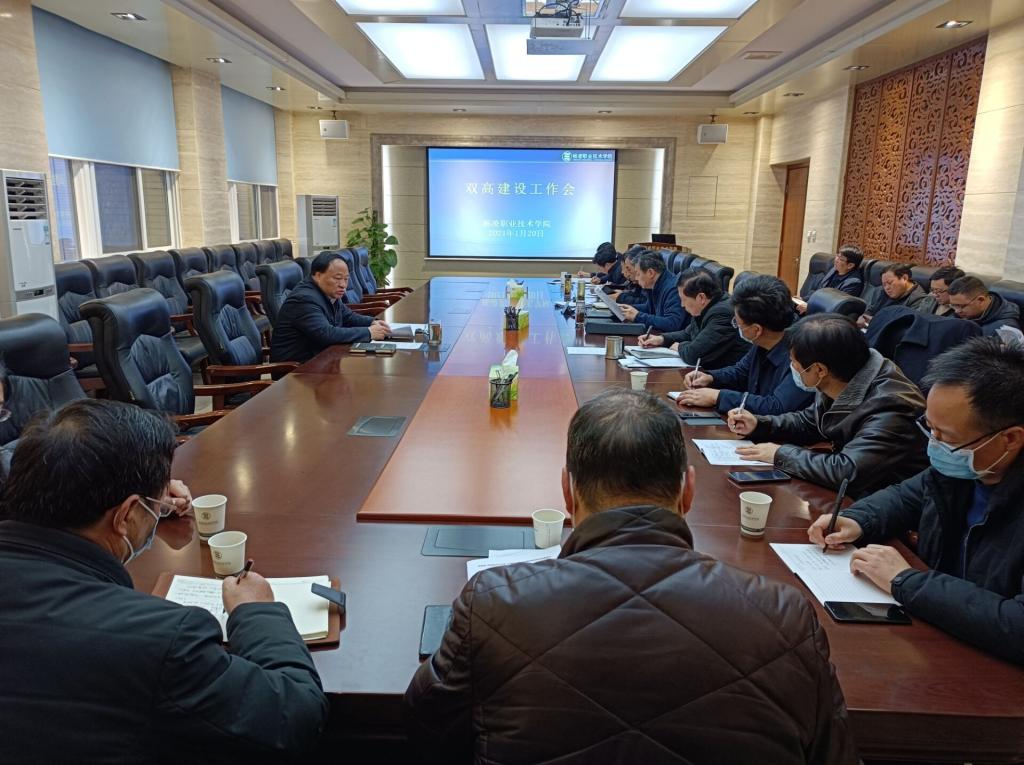 为贯彻落实教育部、财政部关于印发《中国特色高水平高职学校和专业建设计划绩效管理暂行办法》的通知精神,深化“双高”计划项目建设绩效管理,总结梳理浦京2019-2020年度“双高”计划项目建设任务完成情况,稳步推进浦京项目建设工作。1月20日上午,学校组织召开“双高”计划建设工作会。校长王周锁,副校长张迪、祝战斌,党委委员、发展规划处处长张宏辉,党委委员、教务处处长拜存有及相关部门、各分院负责人参加了会议。
