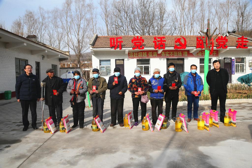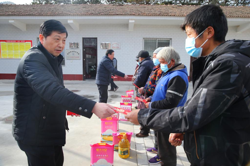 在高码头村和紫石崖村,任得元、祝战斌将米油等慰问品和慰问金一一送到20个低保户和老党员手中,祝他们春节快乐、身体健康。