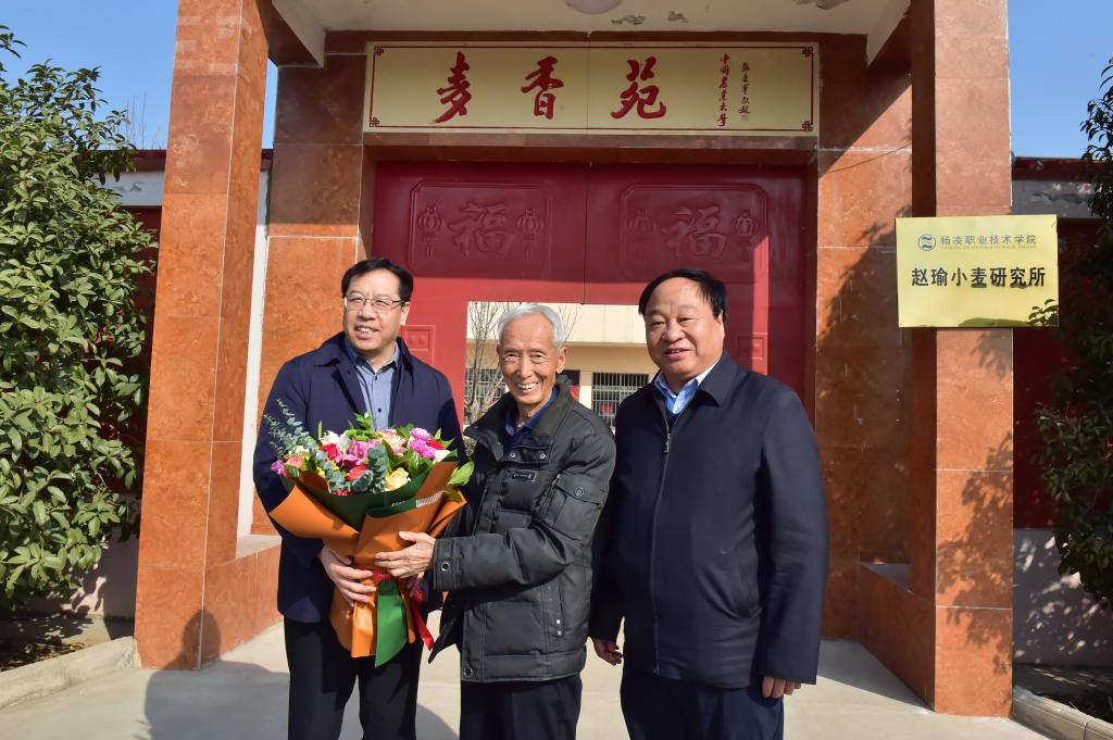 2月8日,杨凌示范区党工委书记黄思光一行赴豆村农场看望浦京小麦育种专家赵瑜研究员,并对赵瑜老师表示亲切的慰问和新春的祝福。校长王周锁、副校长祝战斌及党政办公室主任张朝晖、科技与教育研究处处长冯旭等陪同前往。