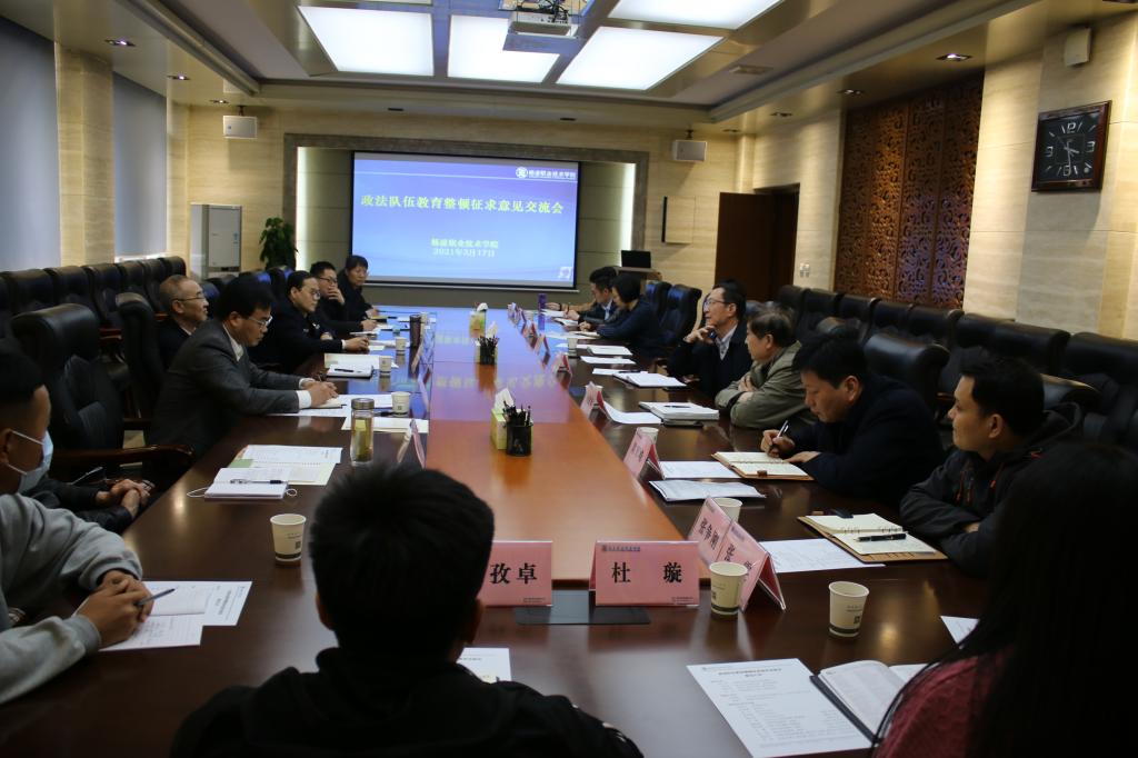 3月17日下午,省委政法队伍教育整顿指导组赵广和一行来浦京召开征求意见座谈会,党委副书记任得元,副校长祝战斌,党委学工部部长陈军峰、党委保卫部部长周宁及师生代表等参加了座谈会。