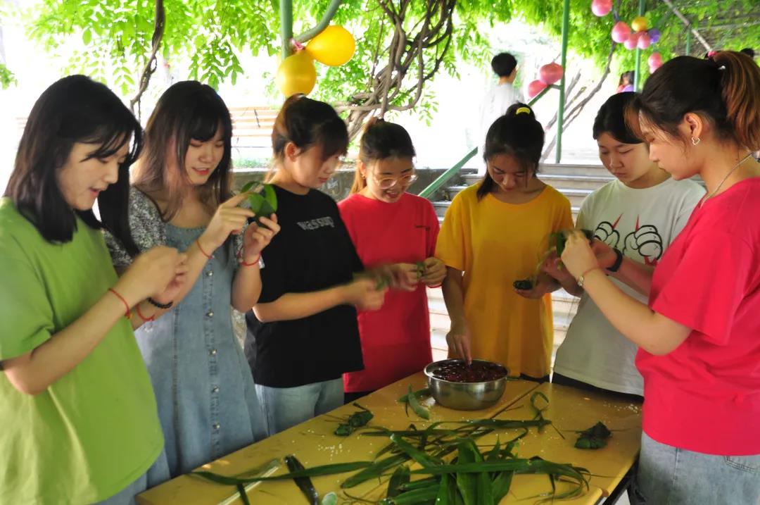 活动包括现场制作香包、包粽子、书法展示、汉服秀等。药物与化工学院中药类专业的学生展示了香包原材料炮制和传统手工制丸的过程,并为师生讲解香包中所含的中药材名称及功效。
