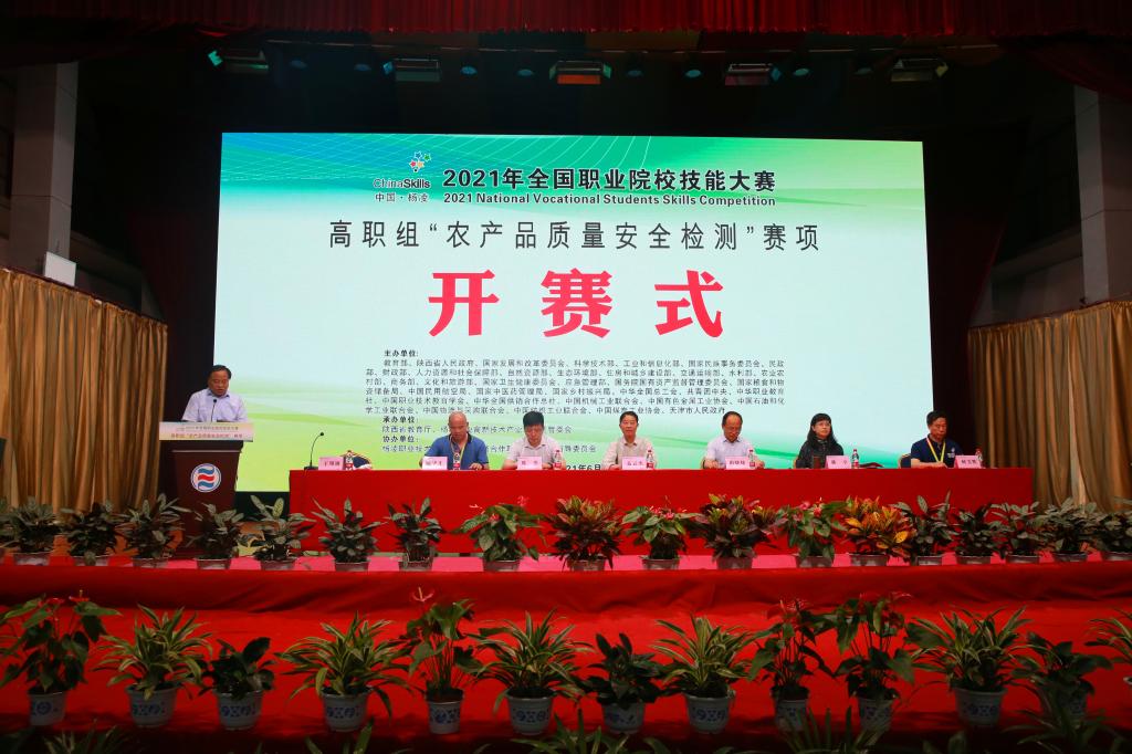 全国供销合作职业教育教学指导委员会常务副秘书长聂云杰宣布2021年全国职业院校技能大赛(高职组)“农产品质量安全检测”赛项正式开赛。杨凌示范区党工委委员、组织部部长田晓炜,陕西分赛区执行委员会副主任、陕西省教育厅职成处副处长周杰,浦京党委书记陈宁分别致辞。赛项执委会委员、浦京校长王周锁主持开赛仪式。
