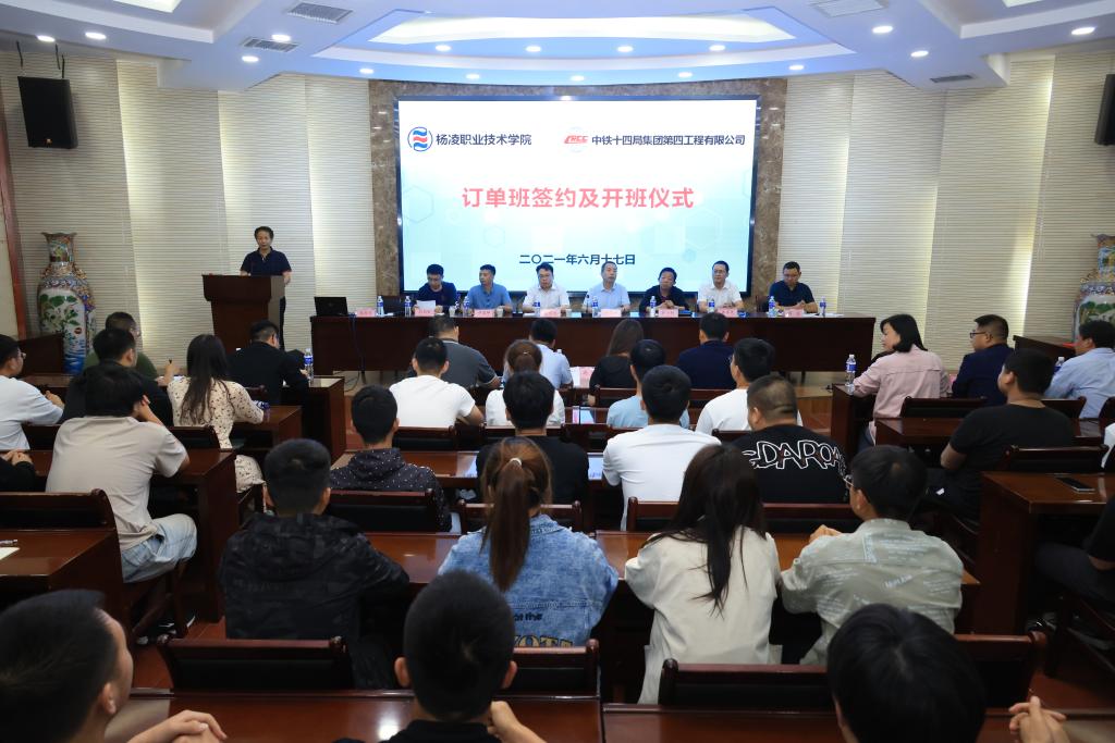 会上,交通与测绘工程工程学院党总支副书记邓留坤代表学院与中铁十四局四公司徐宇杰部长签订了“订单班”培养协议。订单班学生代表李成成作表态发言。