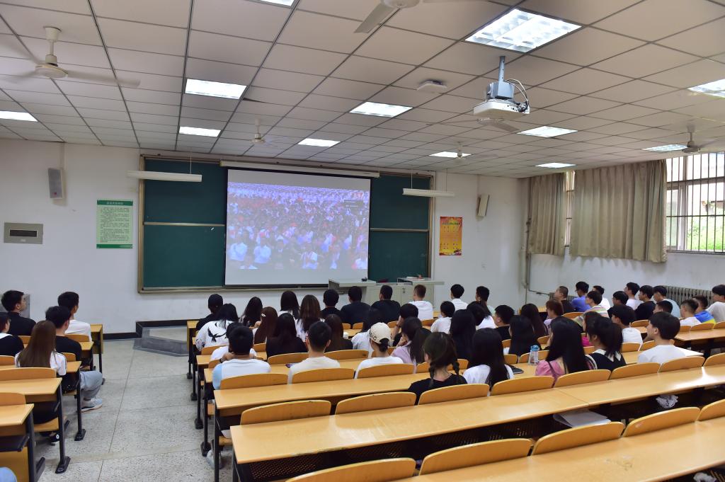 上午7时50分,学校党委理论学习中心组成员齐聚醒钟楼208会议室,收看庆祝中国共产党成立100周年大会现场直播。与此同时,各党总支(直属党支部)组织党员和广大师生集中收看庆祝中国共产党成立100 周年大会现场直播。习近平总书记的讲话慷慨激昂、振奋人心,特别是几个庄严宣告,让师生党员们感受到了作为一名中国共产党员的荣誉感和自豪感。观看直播期间,大家激动不已、掌声不断。