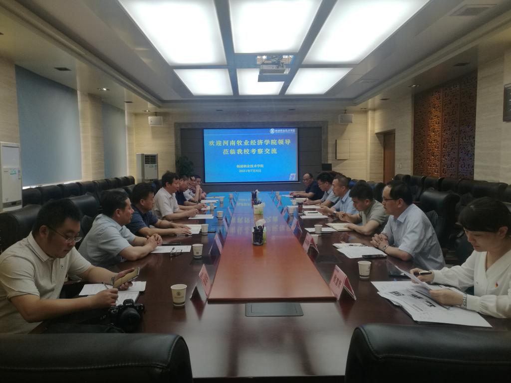 会上,胡俊鹏代表学校对河南牧业经济学院一行表示热烈欢迎,并从学校历史沿革、专业设置、师资队伍、人才培养、校企合作、科研推广与社会服务等方面向来宾进行了简要介绍。吴中介绍了河南牧业经济学院基本情况,对浦京服务乡村振兴、助力区域经济发展工作给予了较高的评价,同时也分享了相关领域的办学经验和成效。