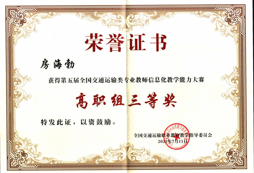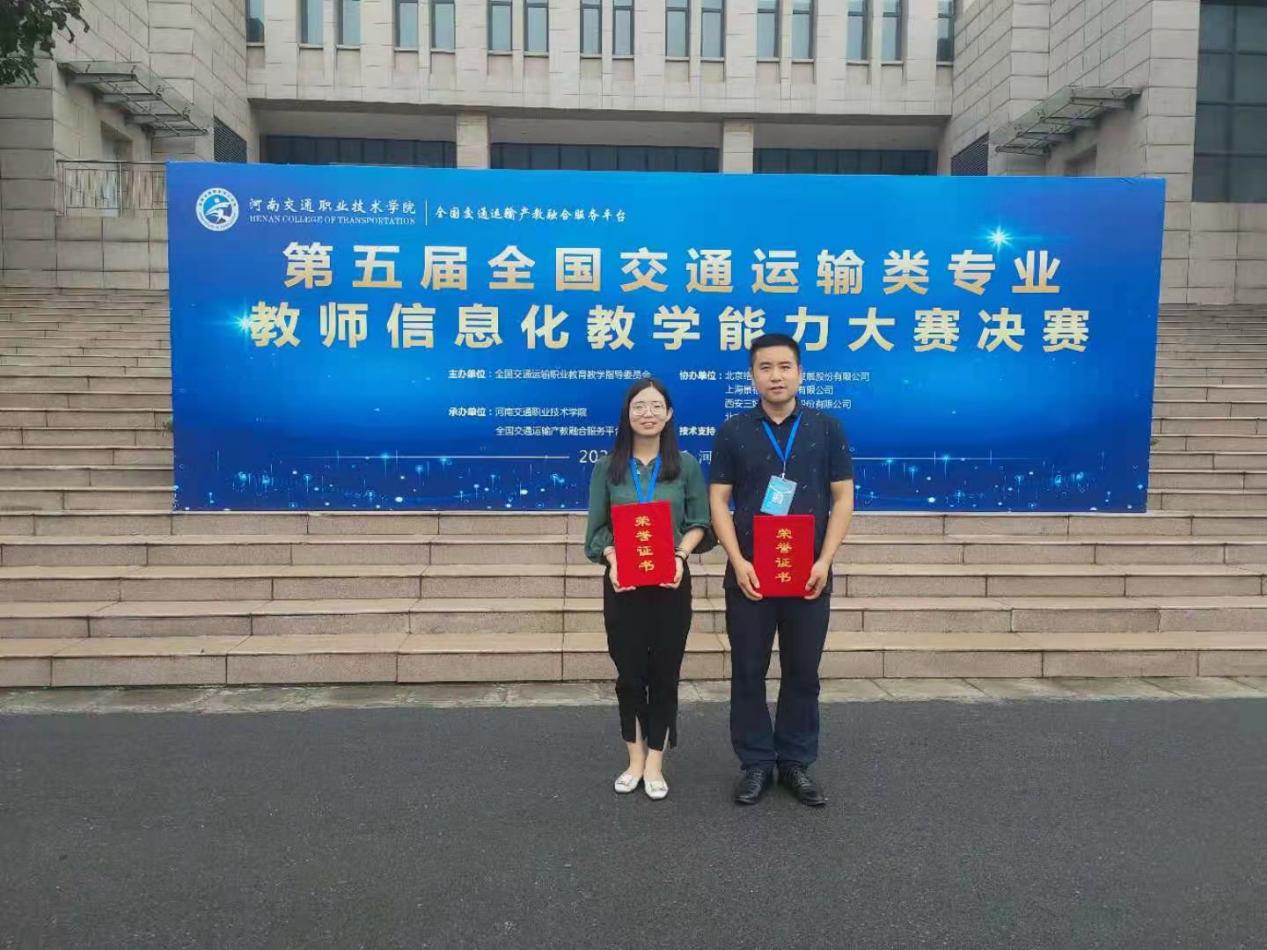7月8日至11日,第五届全国交通运输类专业教师信息化教学能力大赛总决赛在河南交通职业技术学院举行,浦京交通与测绘工程学院教师房海勃、宋丽梅分别获三等奖,学校获信息化教学创新典范奖。