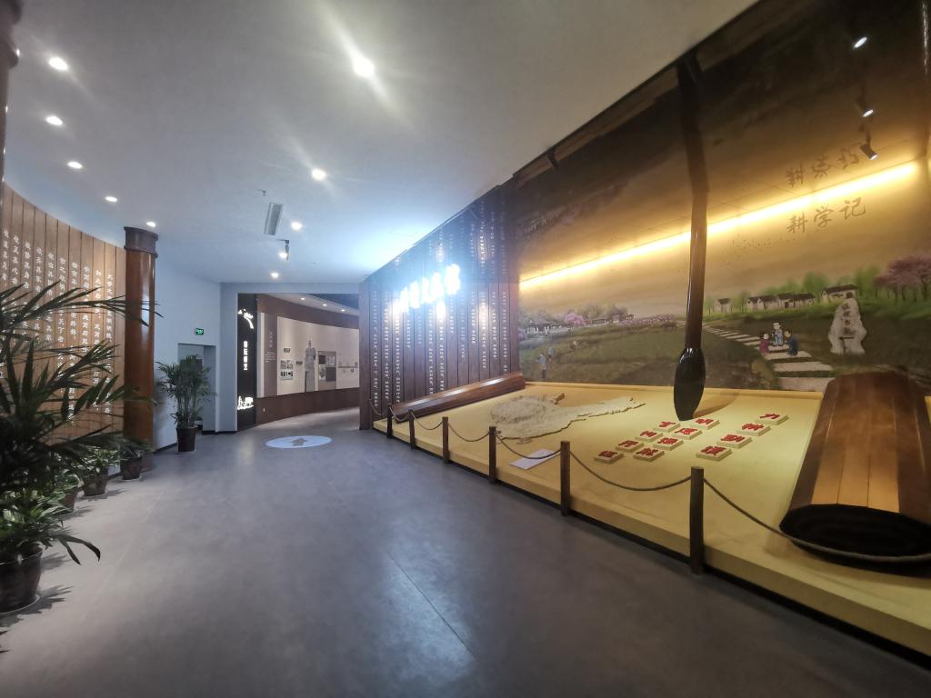 力耕勤读展厅作为展馆中的重点部分,以古木深色营造出了厚重的历史文化氛围,从言传身教、学字知事、边耕边读、乡绅表率、职业教育五个部分,系统展示了耕读文化的历史发展和文化传承。