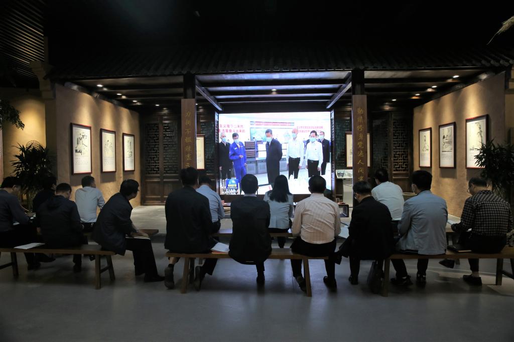 在耕读文化馆,全体与会人员坐于耕读小院,通过LED大屏观看了习近平总书记在陕西榆林考察新闻报道视频和中共中央政治局第三十三次集体学习新闻报道视频。随后,大家认真学习了新华社《习近平在陕西榆林考察时强调:解放思想 改革创新 再接再厉 谱写陕西高质量发展新篇章》、习近平总书记在2021年秋季学期中央党校(国家行政学院)中青年干部培训班开班仪式上的讲话、教育部关于印发《加强和改进涉农高校耕读教育工作方案》的通知、教育部党组关于《教育系统深入学习贯彻习近平总书记在两院院士大会、中国科协第十次全国代表大会上重要讲话精神》的通知。