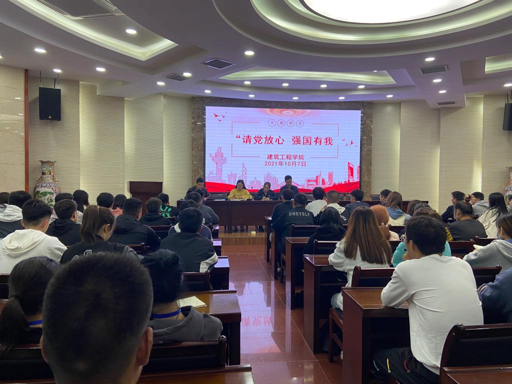 ——开展“请党放心   强国有我”主题团日活动。组织各班团支部在国庆节前后开展党史学习教育之“请党放心,强国有我”主题团日活动,以习近平总书记在榆林考察期间的重要讲话、建党百年庆典上青年代表集体朗诵视频、优秀党员代表的纪录片等为主要内容,采取学习研讨、分组汇报、主题演讲、诗歌朗诵、视频鉴赏、感悟分享、素质拓展等多种形式进行,使广大团员青年在重温历史的苦难与辉煌中,更加坚定为共产主义事业奋斗终身的信念,永远感党恩、听党话、跟党走。