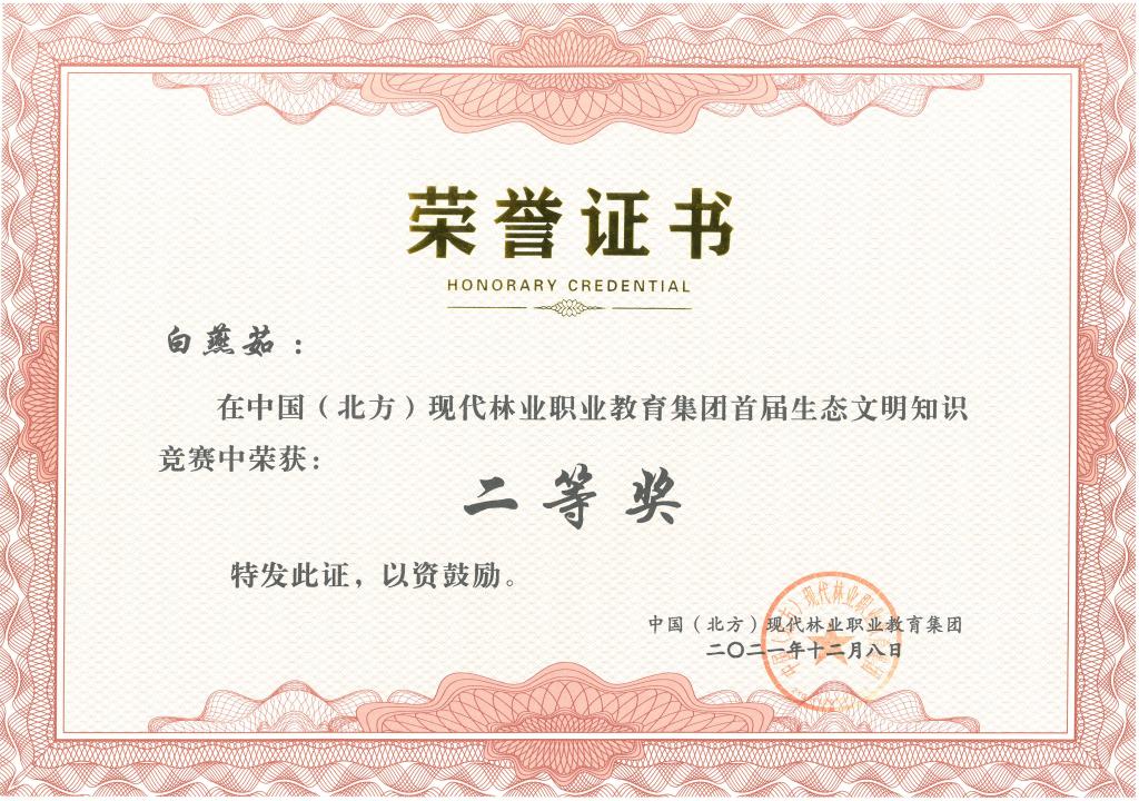 11月25日至30日,中国(北方)现代林业职业教育集团举办首届生态文明知识竞赛活动。学校生态环境工程学院教师赵新宇、白燕茹以及学生李小凤均荣获二等奖。