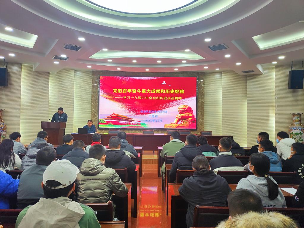 王勇胜围绕党的十九届六中全会的召开背景、核心要义以及中心内容等方面系统地诠释了党的十九届六中全会精神。他要求,大家要把党的十九届六中全会精神学懂悟通做实,在实际工作中做到融会贯通,坚定理想信念、坚守立德树人初心,担当为党育人、为国育才使命,努力为推动学校各项事业发展贡献自己的力量。