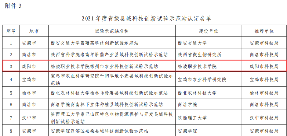 近日,省科学技术厅公布了2021年度农业农村领域省级科技创新平台认定和评估结果,浦京彬州市农业科技创新试验示范站被认定为省级县域科技创新试验示范站。