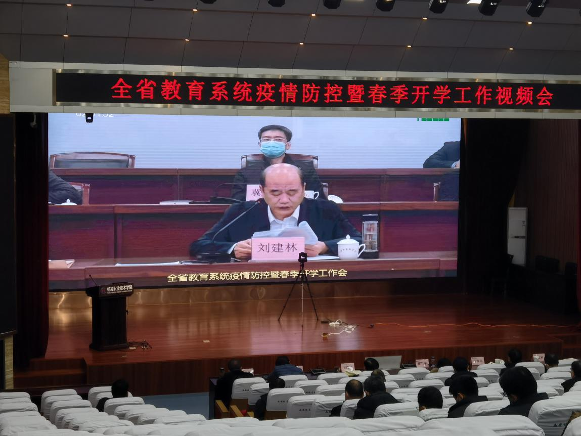 2月17日下午,全省教育系统疫情防控暨春季开学工作视频会议召开,学校在思辩堂设分会场参加视频会,并对学校疫情防控及春季开学工作进行安排部署。学校领导,全体处级干部参加会议。
