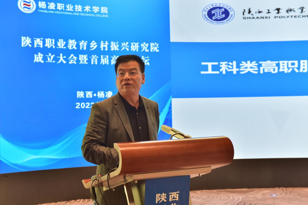 在首届“陕西职业教育助力乡村振兴”高峰论坛上,教育部职业教育发展中心副主任刘宝民教授远程作了题为《职业教育助力乡村振兴的思考》的主旨报告,西安交通大学马克思主义学院院长燕连福教授作了题为《关于推动乡村振兴战略的几点思考》的报告,陕西工业职业技术学院院长刘永亮教授、汉中职业技术学院党委书记余德华研究员、咸阳彬州市副市长石万虎、350vip浦京集团官网副院长胡俊鹏分别作了交流发言。高峰论坛还讨论并发布了《陕西职业教育乡村振兴研究院2022年度研究课题选题指南》。