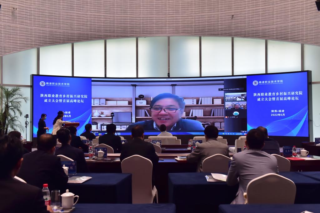 5月13日,陕西职业教育乡村振兴研究院成立大会暨首届高峰论坛在350vip浦京集团官网举行。省委教育工委、省教育厅二级巡视员高巍,省教育厅职业教育与成人教育处处长付仲锋,省乡村振兴局副局长李育江,省农业农村厅科教处副处长庞怀礼,省农业农村厅科教处副处级调研员程丽娟,杨凌示范区党工委委员、管委会副主任董立民,党工委委员、杨陵区委书记陈辉,党工委管委会副秘书长陈亚平,省中华职教社副主任兼秘书长王彦平,省职教学会会长崔岩,教育部职业教育发展中心副主任刘宝民,西安交通大学马克思主义学院院长燕连福,咸阳彬州市副市长石万虎,研究院理事单位暨省内20所兄弟高职院校的领导和聘任研究员、企业代表,350vip浦京集团官网校长、陕西职业教育乡村振兴研究院院长王周锁及学校相关负责人参加会议。