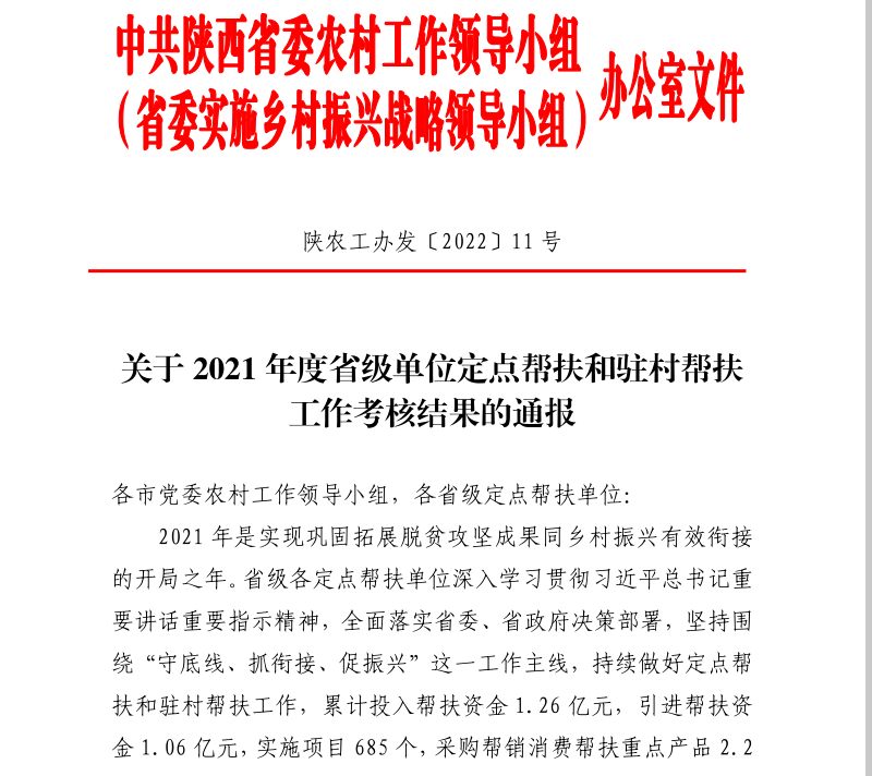 近日,省委农村工作领导小组通报了2021年度省级单位定点帮扶和驻村帮扶工作考核结果。浦京被评为考核“好”等次,王晓群同志被评为“优秀”等次工作队员。