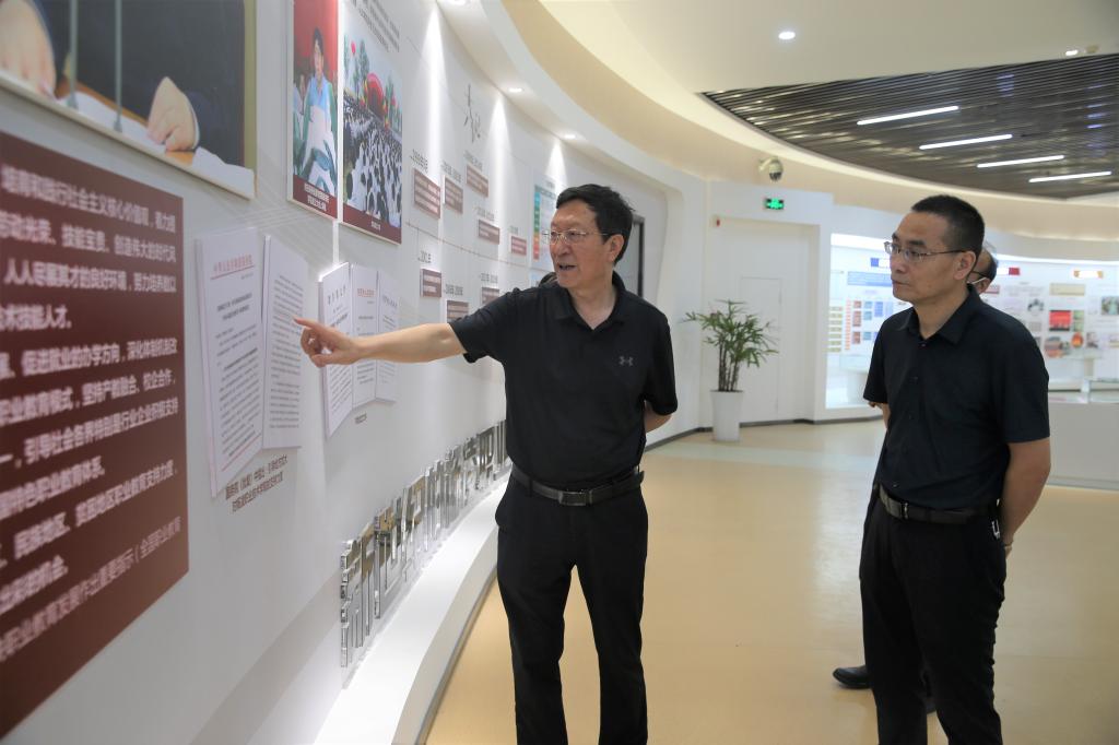 7月12日上午,渭南职业技术学院副院长王韦华一行4人来浦京,就校史馆建设工作进行考察交流。学校党委副书记任得元,副校长祝战斌,党委委员、宣传部部长裴红波陪同考察。