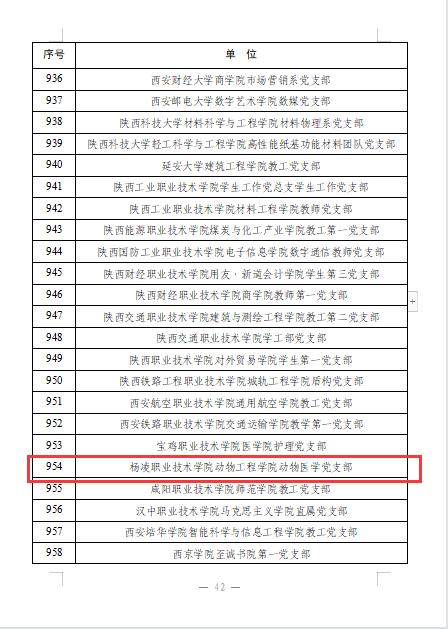 近期,教育部思想政治工作司、省委教育工委先后公布第三批新时代高校党建示范创建和质量创优工作名单。浦京动物工程学院党总支动物医学党支部入选全国党建工作样板支部创建单位。学校党委、生态环境工程学院党总支、生物工程学院党总支植物保护与农业生物技术党支部分别入选陕西省党建示范高校党委、党建标杆院系、党建样板支部创建单位。