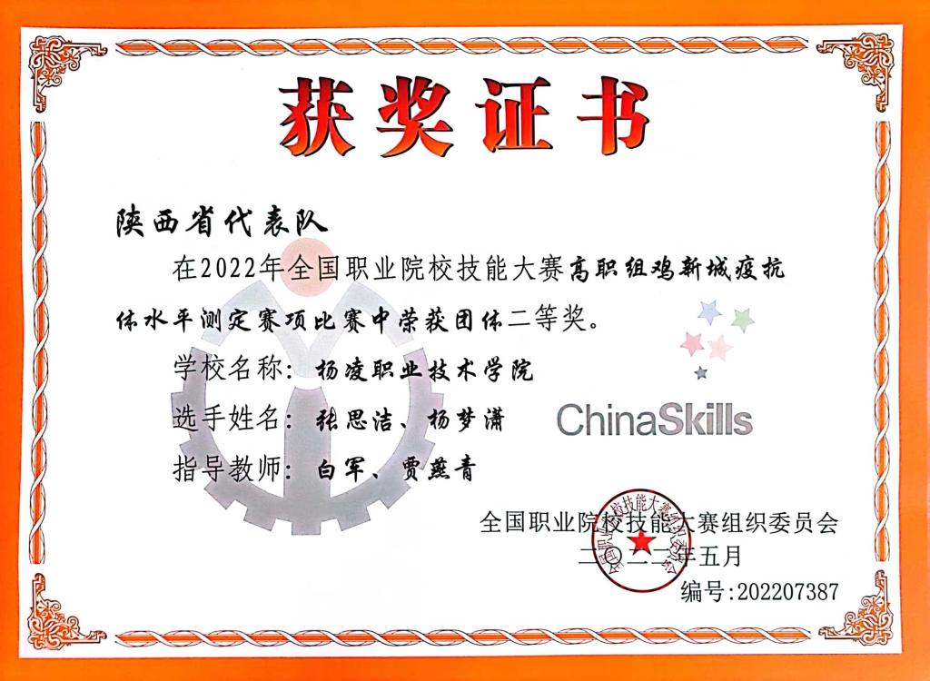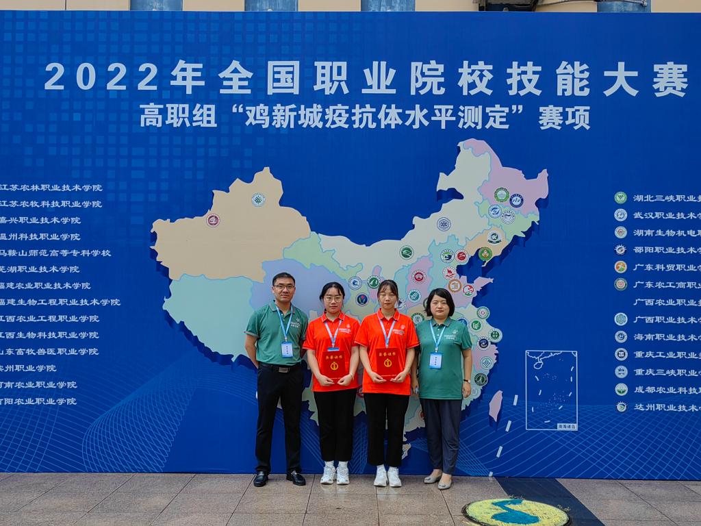 8月16日至19日,2022年全国职业院校技能大赛高职组“鸡新城疫抗体水平测定”赛项在山东畜牧兽医职业学院举办,来自全国28个省份的51支代表队、102名选手参加了本次比赛。浦京动物工程学院学生张思洁、杨梦潇以总分排名第六的成绩荣获二等奖第一名,这也是浦京参赛以来取得的最好成绩。