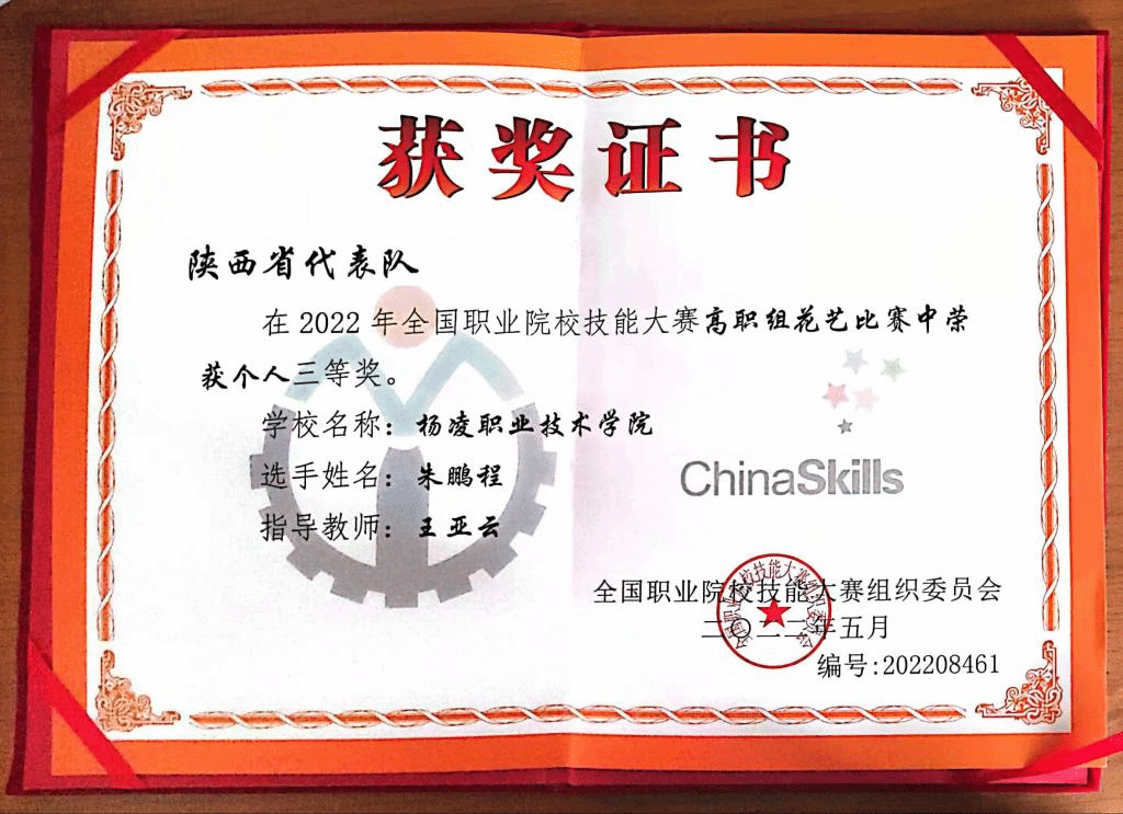 8月23至26日,2022年全国职业院校技能大赛高职组“花艺”赛项在湖北生态工程职业技术学院举行,来自全国28个省、自治区、直辖市的54支代表队参加了比赛。浦京生态环境工程学院学生朱鹏程代表陕西省参赛并荣获三等奖。