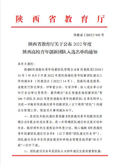 杨振华团队是浦京继2020年后第二个入选的陕西高校青年创新团队,将有力推动学校科技创新工作发展,支撑学校“双高计划”建设。