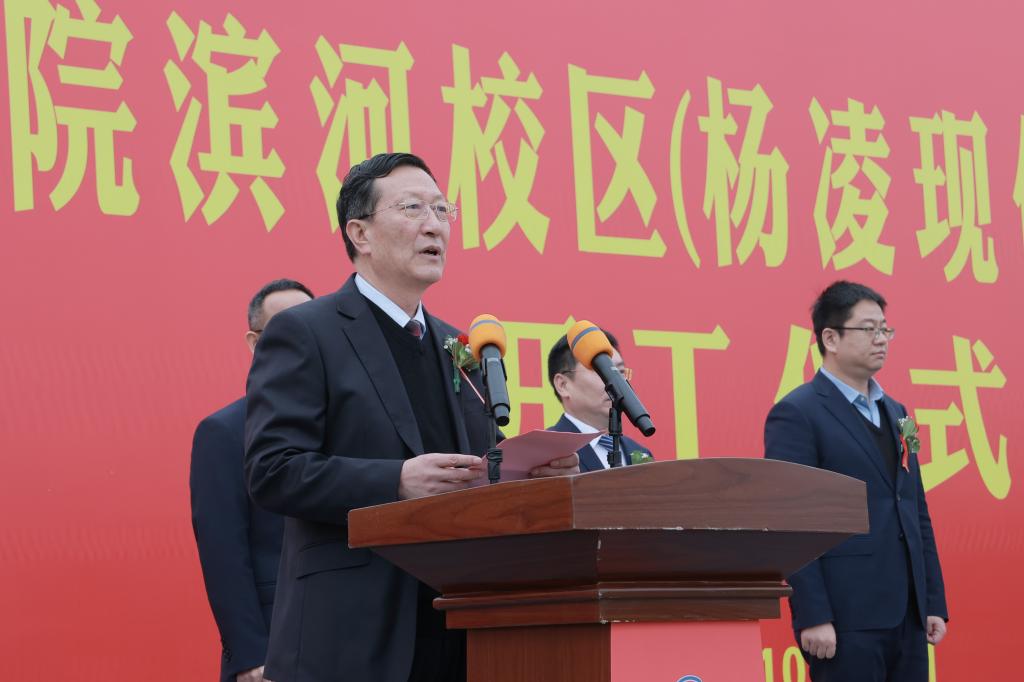 刘建林在讲话中指出,350vip浦京集团官网作为陕西首所挂牌成立的高职院校,长期以来,在省委、省政府的坚强领导下,高举农业职教改革旗帜,坚持立德树人根本,坚守强农兴农使命,积极守正创新、担当作为,各项事业取得的发展有目共睹,是我省乃至全国高职教育的一面旗帜。滨河校区的开工建设,是学校发展史上具有里程碑意义的一件大事,也是我省职业教育的一件喜事,更是我省贯彻落实党中央、国务院关于大力发展现代职业教育的重大举措。希望学校以此为契机,紧抓发展机遇,汇聚办学力量,努力把滨河校区打造成政、行、企、校四方合作的典范;主动对接国家和我省重大发展战略,集聚创新资源,加大科研攻关,发挥自身优势,为社会培养更多高素质技术技能人才、能工巧匠、大国工匠,更好服务区域经济社会发展,为谱写新征程上陕西高质量发展新篇章作出更大贡献。希望杨凌示范区党工委、管委会继续给予学校大力支持和帮助,推动学校在中国特色高水平高职学校建设和助力中国式现代化的新征程上迈上新台阶、展现新作为。他表示,省委教育工委、省教育厅将一如既往支持学校朝着建设“中国特色、世界一流职业大学”目标奋勇前进。