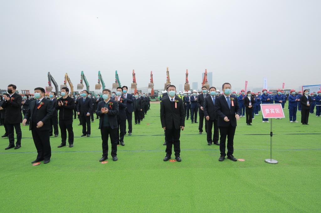 开工仪式上,参与浦京滨河校区建设的三家企业负责人分别发言。各级领导、嘉宾代表和师生代表共同为滨河校区建设奠基培土。