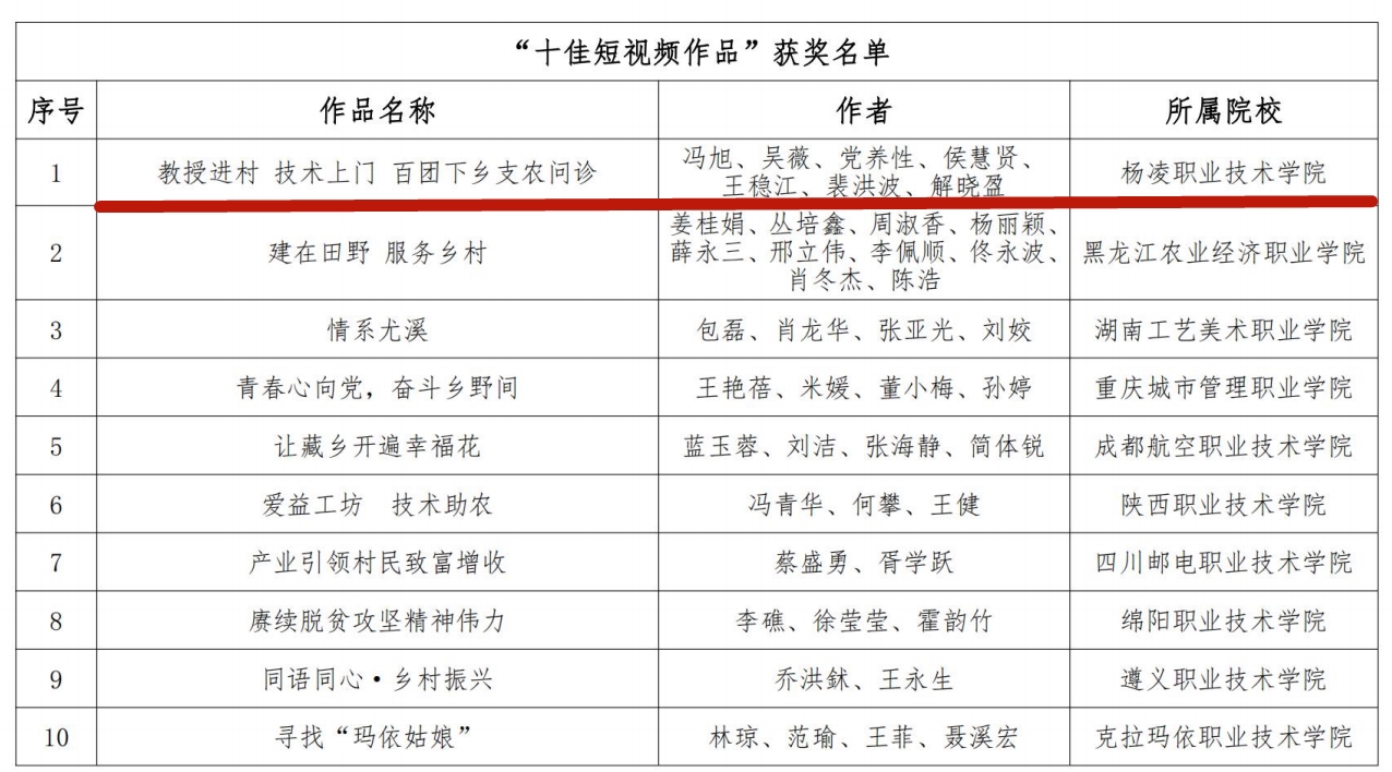 11月13日,全国职业院校巩固扶贫成果服务乡村振兴协作联盟公布了“乡村振兴 职教同行”摄影暨短视频大赛作品评选结果,冯旭团队创作的短视频《教授进村技术上门百团下乡支农问诊》获得“十佳短视频作品”,浦京获优秀组织奖。获奖作品将通过联盟公众号和网站宣传推介并向全国主流媒体和上级部门重点宣传推介。