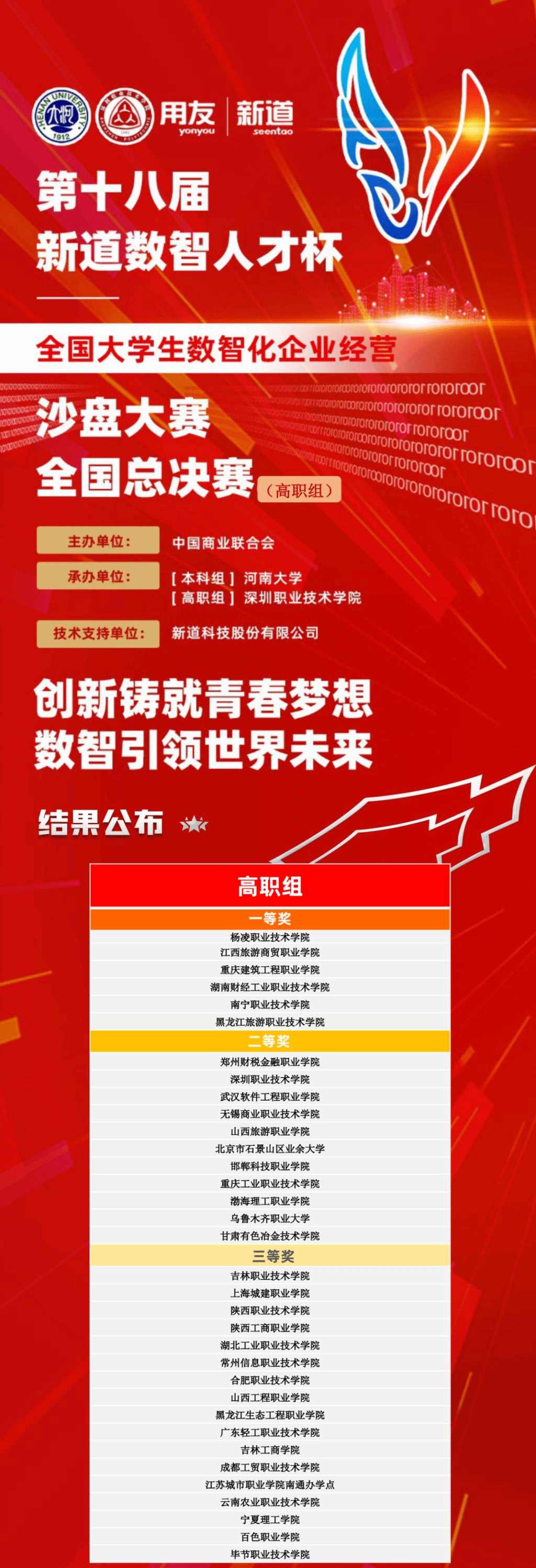 本次大赛由中国商业联合会主办,共有80所高职院校参赛。大赛以“数智企业经营管理沙盘”为竞赛平台,以经营团队的方式分设财务总监、生产总监、营销总监、人力资源总监4个岗位,在仿真的竞争市场环境中,连续从事四个年度的模拟企业经营管理活动,主要考察参赛选手企业管理、财务会计、人力资源管理、大数据管理运用等专业核心知识,让学生了解数智企业的运营模式以及对不同岗位的能力需求,提升学生对商业社会和实际岗位的认知,提高学生职业素养和实践能力。