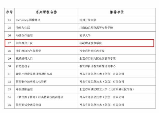 据了解,此次特色课程推介共享行动在各省级教育行政部门推荐基础上,经技术审查、内容审核、专家综合评议、教育部指定网站公示等环节,确定了913门系列特色课程,其中111所高职院校的303门课程入选。浦京7门课程入选,位居全国第五、陕西第一。