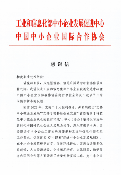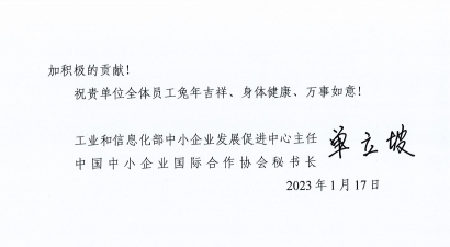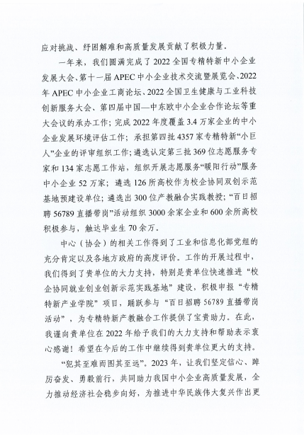 1月17日,新春佳节来临之际,工业和信息化部中小企业发展促进中心向浦京发来感谢信,对浦京在2022年给他们的支持和帮助表示衷心感谢,并希望在今后的工作中继续得到浦京更大的支持。
