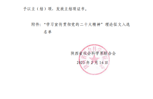 2月16日,省社会科学界联合会公布“学习宣传贯彻党的二十大精神”理论征文入选名单,浦京马克思主义学院教师张中世、韩荣彦撰写的论文《弘扬延安精神 牢记“三个务必”》成功入选。