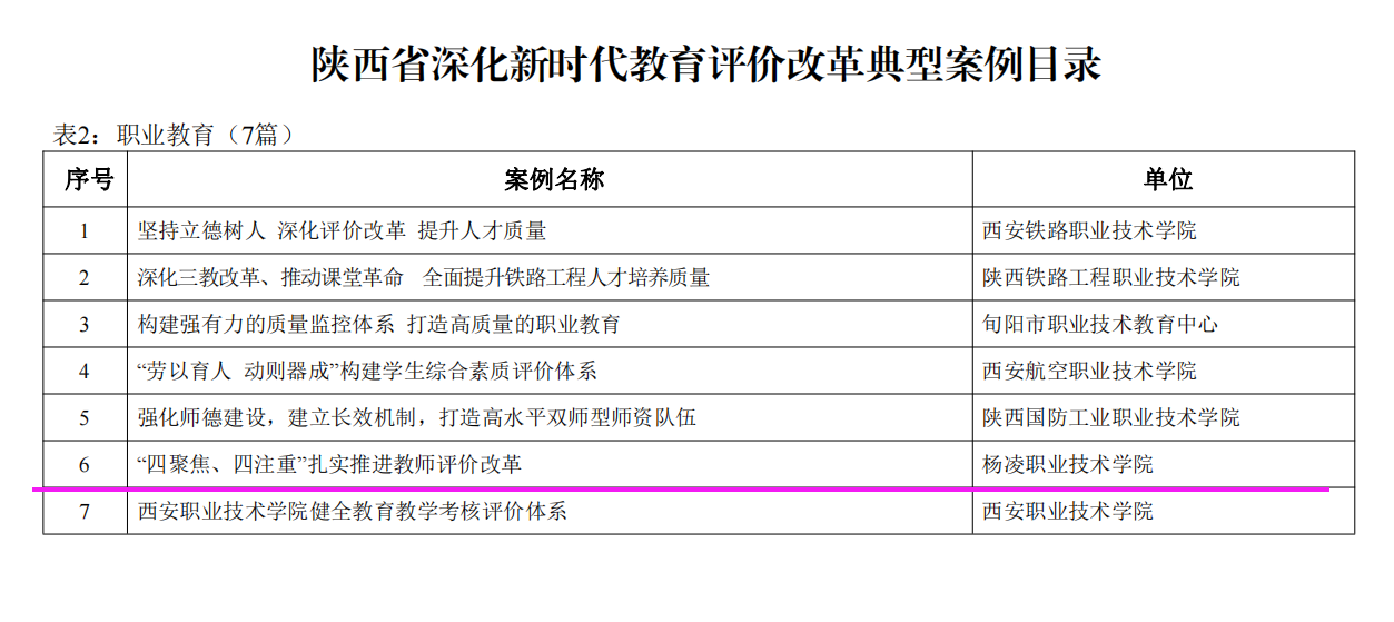 近日,省委教育工作领导小组公布了陕西省深化新时代教育评价改革典型案例名单,浦京《“四聚焦、四注重”扎实推进教师评价改革》案例成功入选,全省共有7个案例入选职业教育典型案例。