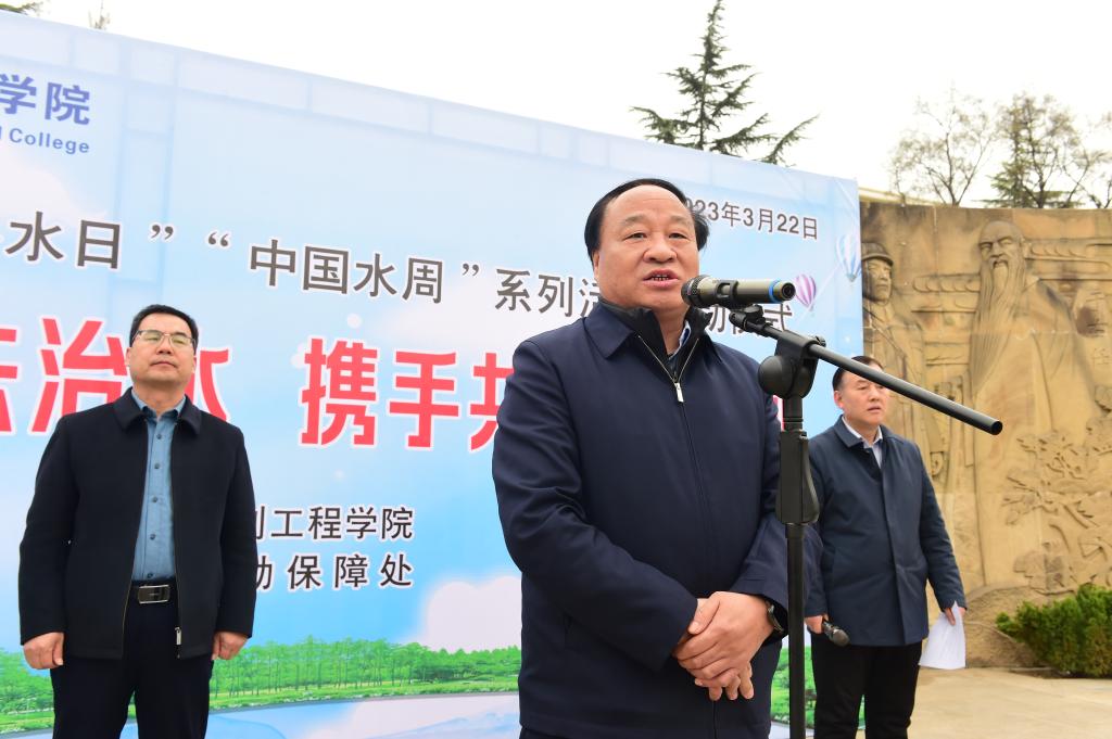 王周锁在致辞中指出,全体师生要铸牢节水意识,将爱水、护水、节水的理念融进心里,从专业课学习中凝练本领,知行合一,以实际行动践行节水、护水理念,从自我做起,为推动全校形成关心水、亲近水、爱护水、节约水的良好风尚起到积极作用,为构建节水型校园贡力量。