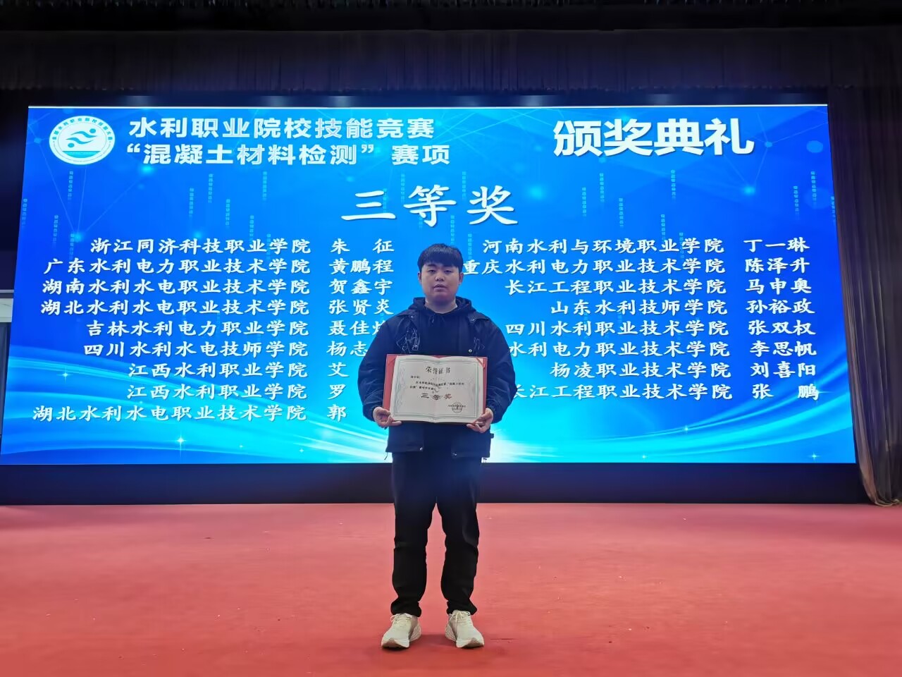 3月22日至25日,由中国水利教育协会主办的全国水利职业院校技能竞赛“混凝土材料检测”赛项(试点赛)在黄河水利职业技术学院举办,浦京代表队分别获一等奖、三等奖。