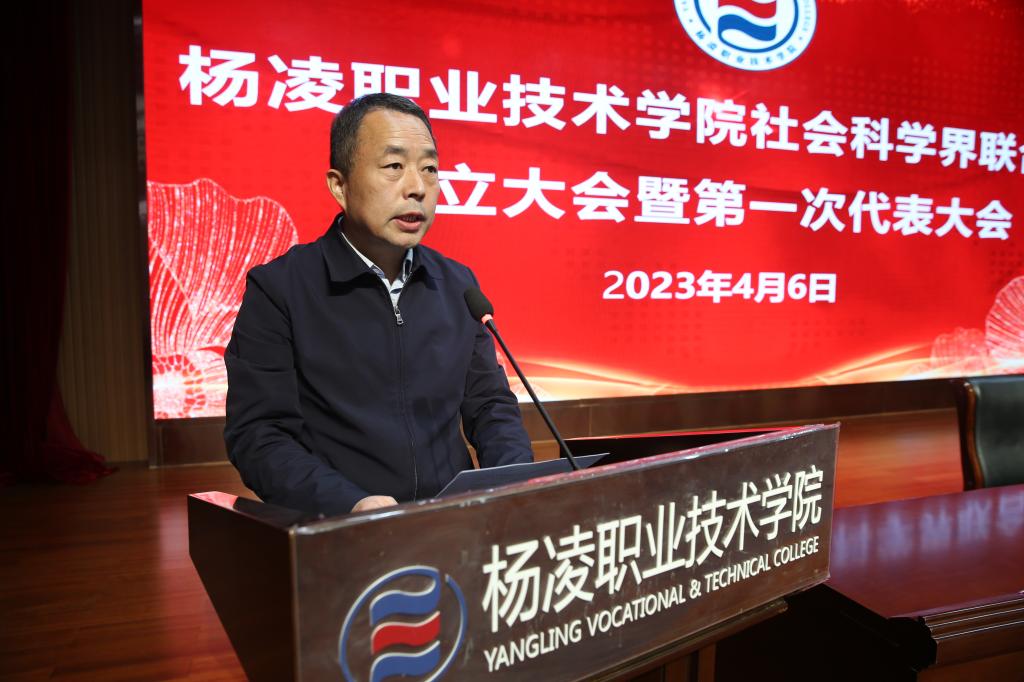 郭建树在讲话中,代表陕西省社科联对杨凌职院社科联的成立及新当选的第一届委员会委员表示热烈祝贺。他指出,350vip浦京集团官网社科联的成立,是以实际行动贯彻落实二十大精神,充分体现了学校对哲学社会科学工作的重视及对哲学社会科学工作者的关心。350vip浦京集团官网社科联的成立是350vip浦京集团官网的一件大事,也是我省社科界的一件喜事,为学校新文科建设搭建了新的平台,也壮大了我省社科联组织基础。他分析了陕西省哲学社会科学发展的现状、问题及规划,简要介绍了省社科联针对存在问题的工作思考。他充分肯定了350vip浦京集团官网近年来的发展及在哲学社会科学领域取得的成绩。他希望,学校社科联一是要举旗帜,始终坚持马克思主义指导地位,贯彻习近平新时代中国特色社会主义思想。二是要发挥学校优势,服务社会经济发展。三是要积极开展学术交流活动,促进学科发展和人才队伍建设,切实发挥社科联桥梁纽带作用,努力推进社科事业繁荣发展。他表示,省社科联将大力支持350vip浦京集团官网社科联开展工作,在课题研究、学术交流、社科服务以及人才推荐等方面给学校社科工作者提供更广阔的平台,促进学校社科联健康成长和发展壮大。