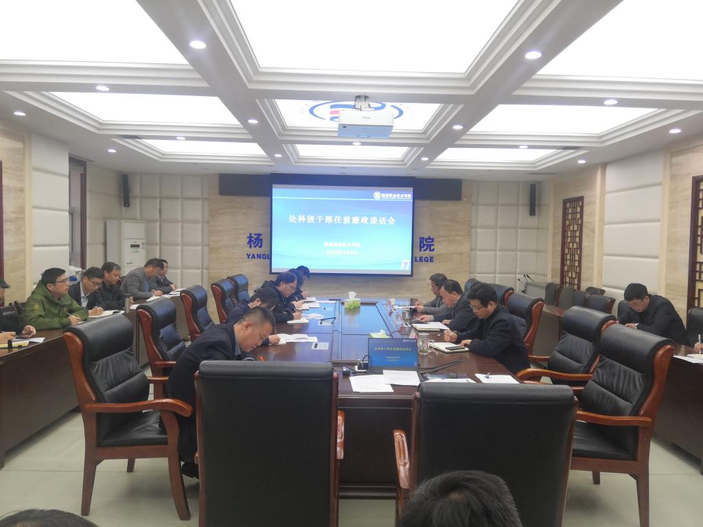 4月6日,学校召开处科级干部任前廉政谈话会。党委副书记、纪委书记王勇胜出席会议并讲话,党委委员、组织部长田争运、16位提任处科级干部、8位岗位调整干部参加会议。会议由纪委副书记晁团光主持。