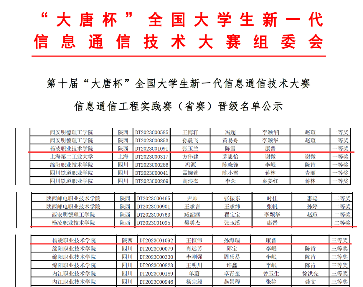 近日,第十届“大唐杯”全国大学生新一代信息通信技术大赛——信息通信工程实践赛道陕西省选拔赛举行。浦京现代通信技术专业学生张玉兰、陈雪获省赛一等奖,樊勇杰、张玉溪获省赛二等奖,王恒伟、孙海瑞获省赛三等奖。