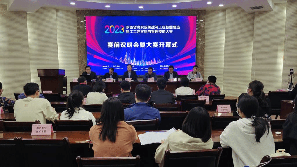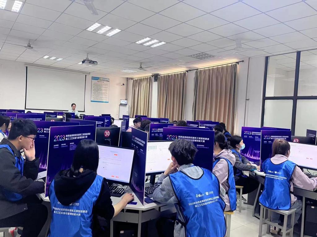 4月28日,2023年陕西省高等职业院校技能大赛“建筑工程智能建造施工工艺实施与管理”赛项在浦京建筑工程学院智能建造实训中心举行,来自全省24所参赛院校47支参赛队的141名参赛选手同台竞技。大赛由省教育厅主办,浦京承办,陕西省建筑业协会、陕西省智能建造研究院、中铁建安工程设计院有限公司协办,西安三好软件技术股份有限公司提供技术支持。