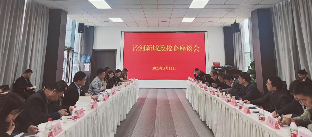 座谈会上,晏鹏介绍了泾河新城的产业布局、未来的发展方向、入驻的企业情况和用人需求等情况。王勇胜介绍了学校的基本情况、人才培养的重点方向和校政企合作的重要意义,他表示学校将进一步加强与泾河新城管委会以及辖区企业深度交流合作,积极实现合作共赢。