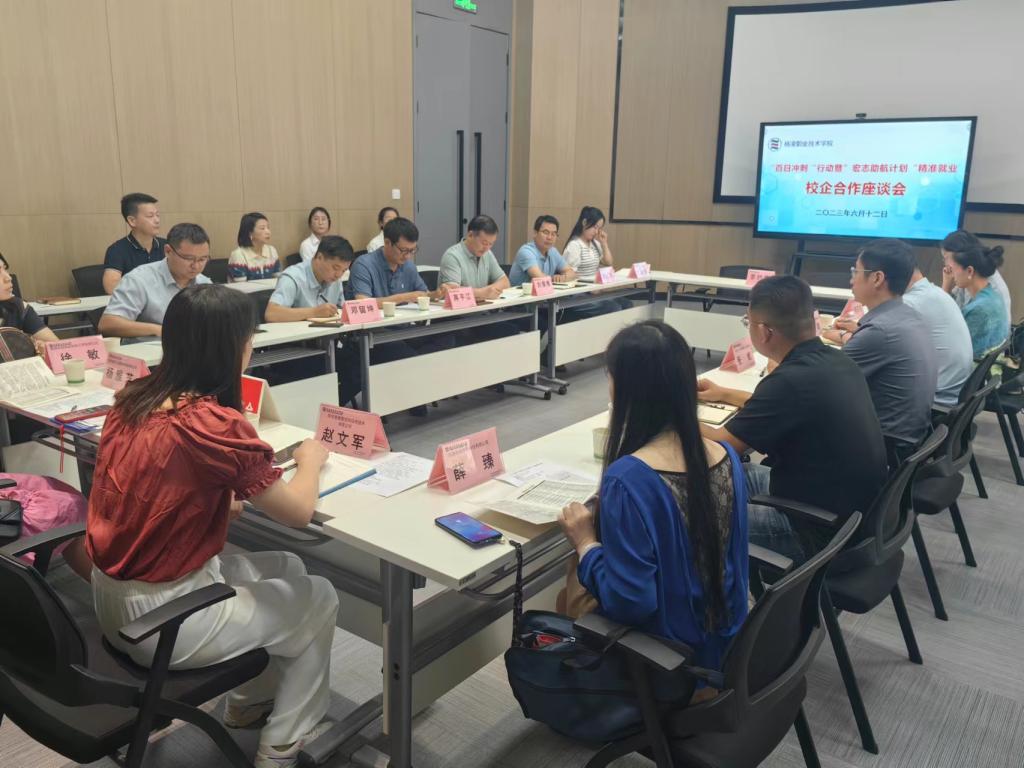 招聘会期间,二级学院还与合作企业举行“百日冲刺”访企拓岗校企合作座谈会。党委书记王周锁,党委副书记任得元,副校长祝战斌、蒋平江、胡俊鹏分别出席座谈会。校企双方围绕人才需求、人才培养、教学模式改革、教师实践锻炼、科研项目合作、实习就业和订单班开设等方面进行了深入的交流探讨。